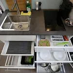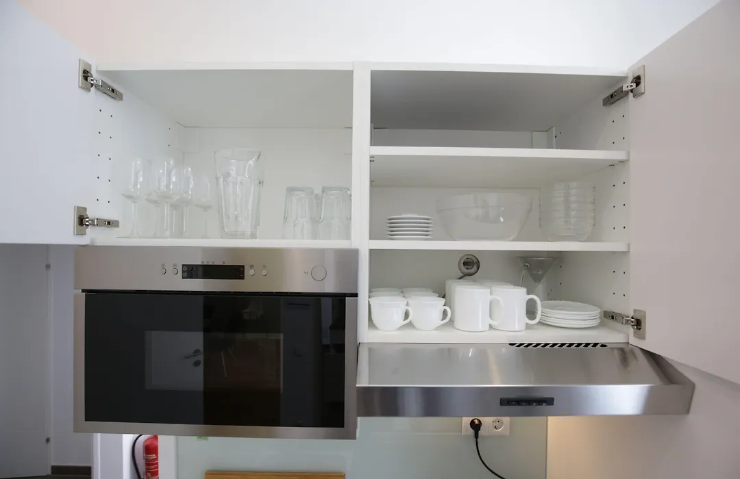 La cucina completamente attrezzata è completa di servizi per la preparazione di tè/caffè, oltre a un microonde, un frigo e un piano cottura, indispensabili per cucinare da soli.